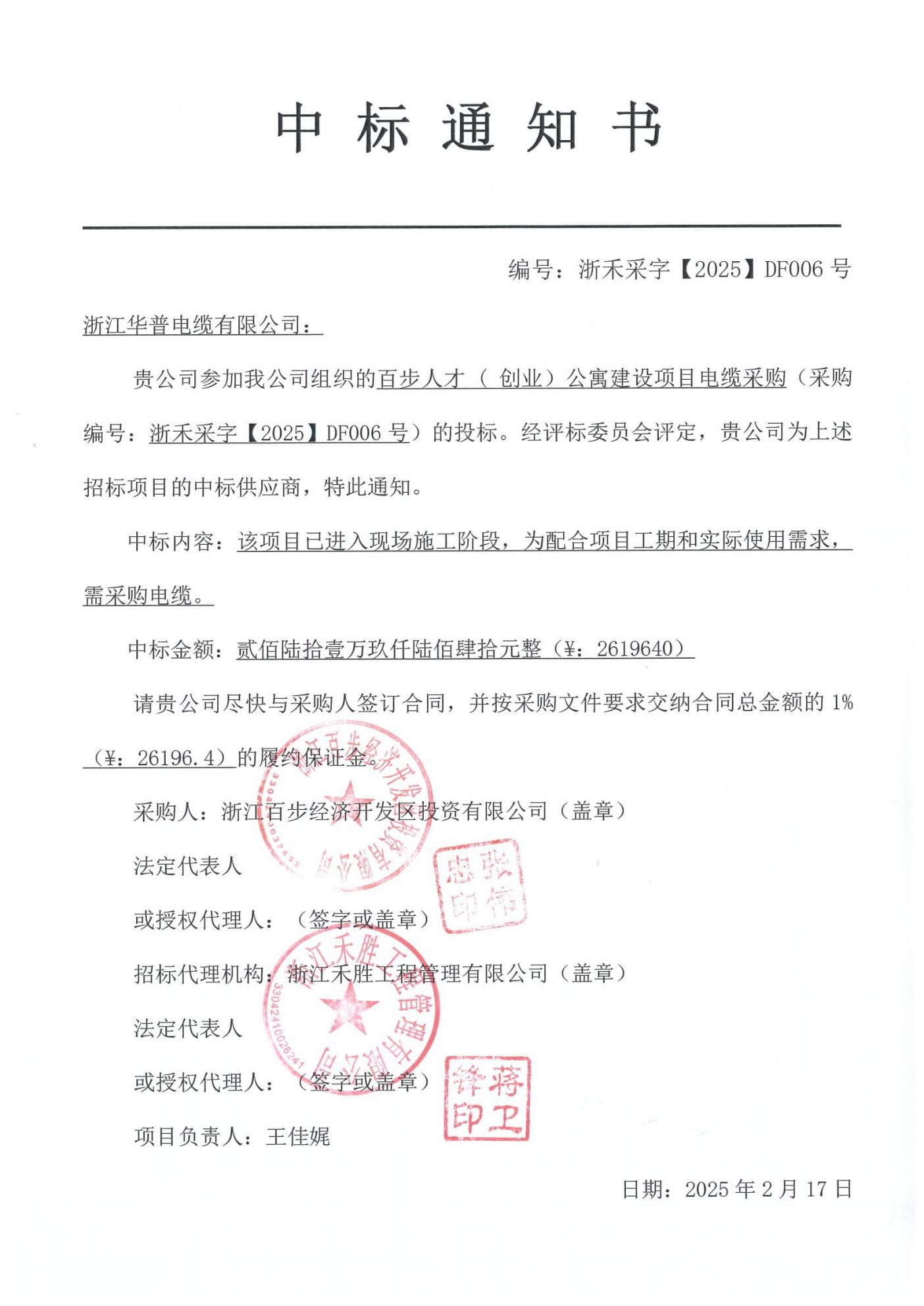 拜布人才(创业)公寓建设项目电缆采购中标通知
